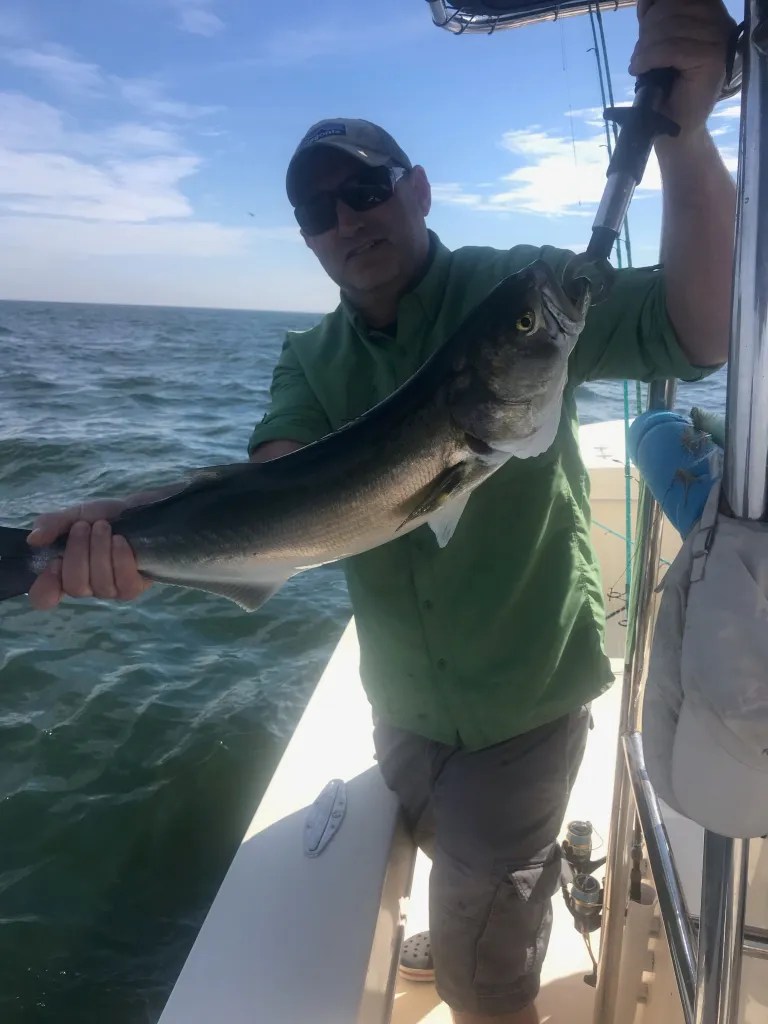 Fished with Brandon and Brian both locals and experienced fisherman. We fished spinning and fly rod and the guys caught loads of Big Bluefish mostly on the ebb tide. Found gator size bluefish under birds and were able to stay with them for maybe 2-3 hours. While chasing the birds and Bluefish we came across some big schools of Albies. We chased the Albies on the ebb and only hooked one which we lost before getting to the boat…but the Albies were there and feeding heavily. Slack tide didn’t produce much but we did get a smorgasbord of different fish with no end to giant porgies, seabass (shorts), blackfish (not in season) and sea robins. Thankfully the ground-fishing didn’t last long and we were on the hunt again for Albies on the tide change. We were able to find school of False Albacore near Race Rock but a comedy of errors messed up our chances. These fish can be finicky anyway and sometimes even tougher on a fly rod. End of day though lots of fish and lots of fun with Brandon and Brian…but no Albies to the boat. Brian and Brandon are too experienced for their albie luck to last. We’ll get em next year for sure. Water temp on the reefs 68 degrees, light wind, mid 70’s. Ebb tide produced better than flood. Spinning and fly rod 12 lb leaders on the fly…15 lb on the spinners. Albies and Bluefish were feeding on bay anchovies.